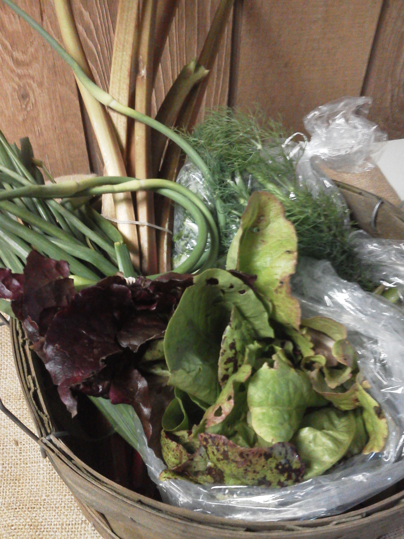 Lettuce- A larger head of romaine. The heads are not real dense yet, but needed to be thinned. If it is broken apart and washed it will have a tendancy to rust more unless it is dried very well.